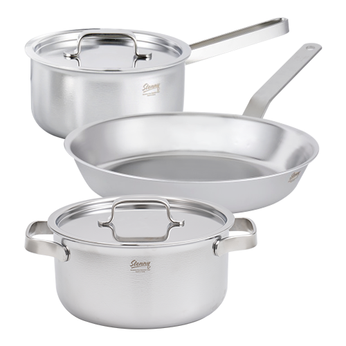 STENNY 3pc Full Stainless Steel Frying Pan & Wok Set
