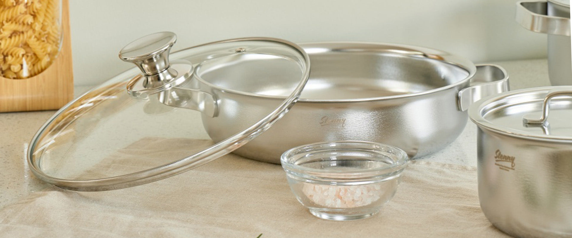 Discover the stainless steel difference, from Korea’s first abrasive-free pan.