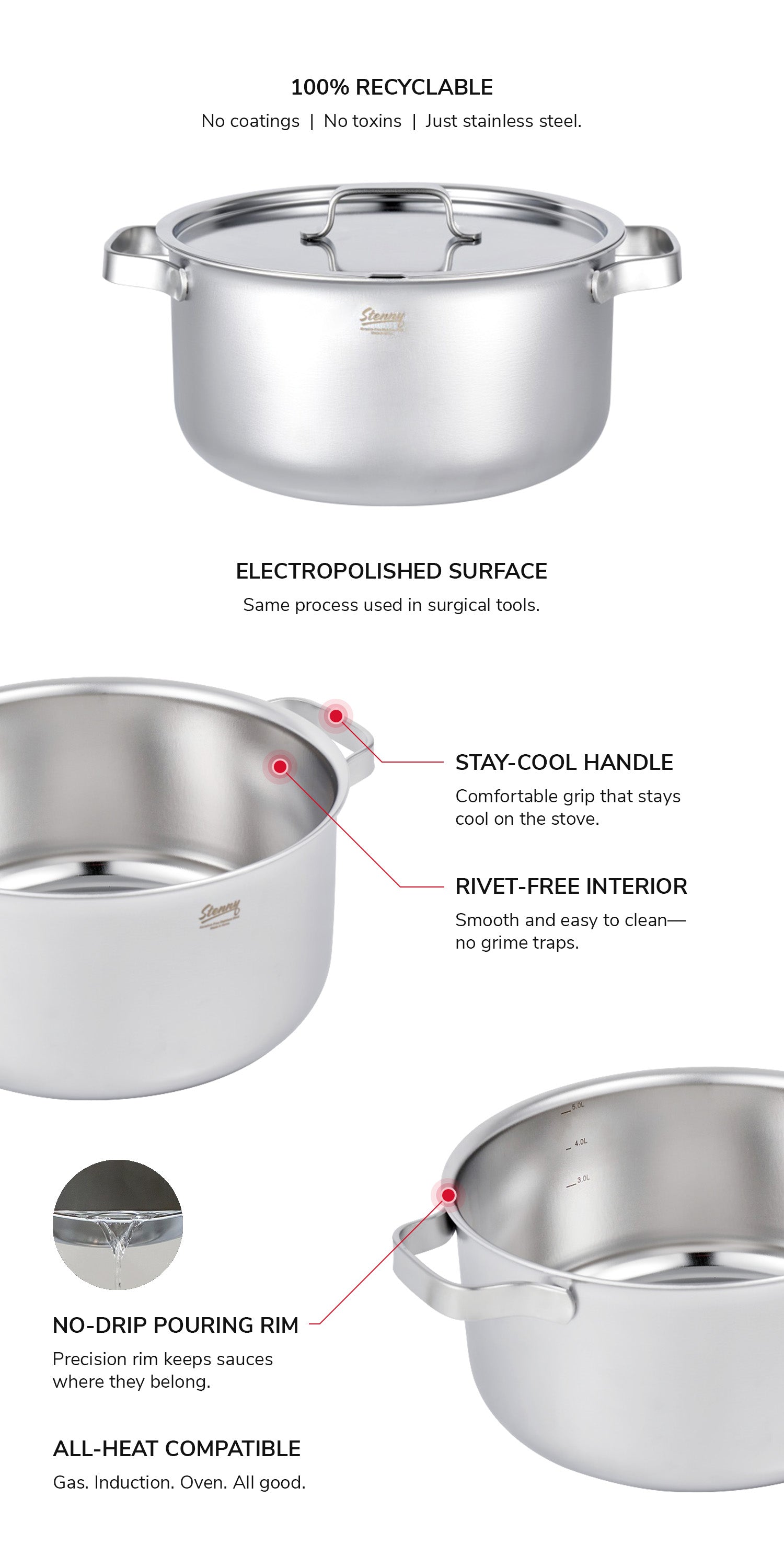 Large stainless steel stock pot perfect for broth, soup, and steaming.